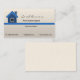 Cartão de visita do corretor de imóveis que mostra uma casa azul com telhado e chaminé sobre uma linha azul central com uma metade inferior cinzenta graduada. apropriado para os corretores de imóveis, os arquitetos, os comerciantes etc. adicione seus próprios detalhes ou mude pias batismais no menu da personalização.
