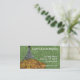 Um cartão de visita para o serviço do gramado ou ajardinar com grama verde, folhas e ancinho.