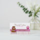 Cartão de visita bonito da padaria feito com trabalhos de arte gráficos de um teste padrão listrado cor-de-rosa, marrom, e branco lunático, na parte inferior e na parte traseira do cartão. Um cupcake do rosa dos desenhos animados e um bolo de camada decoram a parte dianteira do cartão. Personalize o texto para seu negócio da padaria. Excelente para em casa padeiros demasiado. Uma versão leve diferente está disponível com cores um pouco de mais claras, considera a relação abaixo.