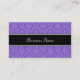 Cartão de visita elegante com design roxo e preto do damasco. Este cartão está pronto para a personalização com sua informação do negócio. Todo o texto pode ser alterado - mude o estilo, cores, tamanhos, adicione ou remova campos do texto para serir suas necessidades. Se você precisa alguma ajuda por favor de enviar por correio electrónico Kirsty em kirsty_pargeter@yahoo.co.uk