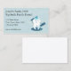 Um cartão de visita para dentistas ou higienistas dentais com dente e escova de dentes no fundo azul.