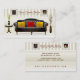 Cartão de visita profissional e elegante para os serviços a empresas do design de interiores ou do design da casa que caracterizam o taupe e as listras esbranquiçados no auge do cartão, um sofá bonito com três travesseiros, arte da parede, e combinando acessórios da decoração. Este cartão de visita elegante é igualmente apropriado para a loja de móveis, a galeria de arte, e muitos usos do serviço de outro sector e os pessoais. Fácil personalizar, apenas substitua o texto fornecido com sua informação desejada.