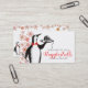 O garçom bonito do pinguim que serve uma bola do fio com as agulhas de confecção de malhas no cartão de visita deste knitter com doodle floresce o fundo.