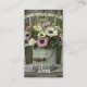 Um elegante buquê rústico de flores cor-de-rosa e creme em um metal curado pode se enturmar com um delicado buquê de creme e flores cor-de-rosa no centro dessa design, para uma vibração bófia rústica. Informação e redes sociais na parte de trás do cartão. Perfeito para florista, arranjador floral e designer ou jardineiro.