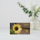 Cartão de visita com aphoto de um girassol com fundo de madeira. Customizável.