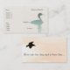 Cartão de visita bonito da natureza, com um Grebe da cerceta, uma silhueta, nadando na parte dianteira, com luz - fundo azul, e uma silhueta da gaivota no preto com fundo coral pálido no reverso do cartão. Pia batismal bonita. Cartão de visita lindo.