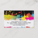 Cartão de visita com um design do splat da pintura do grunge. Este cartão está pronto para a personalização com sua informação do negócio. Todo o texto pode ser alterado - mude o estilo, cores, tamanhos, adicione ou remova campos do texto para serir suas necessidades. Se você precisa alguma ajuda por favor de enviar por correio electrónico Kirsty em kirsty_pargeter@yahoo.co.uk