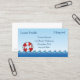 O cartão de visita do Lifeguard com ondas e o lifesaver soam no fundo azul. Graphics© http://www.delightful-doodles.com/