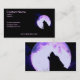 Urro do lobo mostrado em silhueta contra a lua em um cartão de visita.