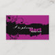 Promova seu negócio do maquilhador com este cartão de visita original elegante corajoso floral do grunge cor-de-rosa e preto e da videira da pintura do splatter do maquilhador. Este cartão de visita corajoso do grunge é igualmente um grande fósforo para técnicos do prego, cabeleireiros, forma, lojas de jóia, desenhistas da bolsa, artistas do tatuagem, perfuradores, e mais. O design do Pam ©2011.