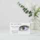 Este cartão de visita bonito tem um olho azul, vermelho, e verde no lado direito. Sua informação do negócio está no lado esquerdo. Todo o texto na parte dianteira é customizável para seu negócio!