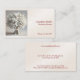Um cartão de visita com um planejador de casamento em mente. Mostra uma bela buquê de flores carregadas pela noiva.