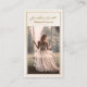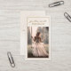 Um cartão de visita com um planejador de casamento em mente. Mostra a parte de trás de uma bela noiva sentada num balanço com um fundo cênico.