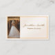 Um cartão de visita com um planejador de casamento em mente. Mostra a parte de trás de uma bela noiva olhando à frente para as belas luzes.