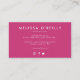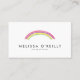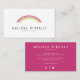 Uma cartão de visita divertida e moderna para planejadores partidários e estilistas. Este design apresenta uma imagem aquosa brilhante de um arco-íris e detalhes comerciais em cinzas escuras. O verso da placa tem um fundo cor-de-rosa fuchsia e seus detalhes de contato e ícones de mídia social (também removível clicando em "personalizar") em branco nítido.