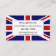 Cartão de visita para um professor de língua inglesa com a bandeira britânica como fundo.