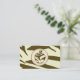 Um cartão de visita para professores com um fundo de impressão em zebra castanha e bege em ambos os lados, de cor rosa. A frente apresenta a ilustração da maçã de impressão em zebra marrom. Personalize o verso com suas informações.