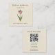 Cartão de visita quadrado de código QR - Linda ilustração botânica de uma flor antiga (tulipa) em um fundo de papel antigo. Os campos de texto modelo são pré-projetados para permitir que você personalize facilmente. Adicione a linha de etiqueta ou o lema com o código qr e informações de contato. Flórida clássica e elegante. Cartão de visita quadrado moderno.