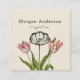 Cartão de visita quadrado de código QR - Linda ilustração botânica de flores antigas (tulipas) em um fundo de papel antigo. Os campos de texto modelo são pré-projetados para permitir que você personalize facilmente. Adicione a linha de etiqueta ou o lema com o código qr e informações de contato. Flórida clássica e elegante. Cartão de visita quadrado moderno.