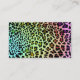 Impressão do leopardo-arco-íris em um cartão de visita. Cor de fundo e texto personalizável por você.