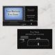 Um design gráfico original de uma tela de computador, laptop, caixa de ferramentas e ferramentas manuais do artista/designer Charmaine Paulson em um cartão de visita de serviço de reparo de computador. O cartão tem modelos para sua personalização.