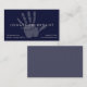 Cartão de visita do terapeuta da massagem do design do handprint de dois azuis marinhos do tom. O texto do cartão de visita é imprimido na luz - a tinta cinzenta mas pode ser mudada à cor de sua escolha usando a personalização ele característica. Datilografe simplesmente dentro sua informação usando o modelo.