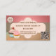 Cartão de visita de padaria doce com um design com cupcakes e um grande bolo de aniversário ou de casamento. Com logotipo e modelos de código QR.