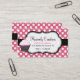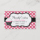 Cartão de visita bonito da padaria feito em um fundo cor-de-rosa e branco das bolinhas, com uma banda corajosa preta, através do meio, e uma área de texto branca afiada preta decorativa, na parte dianteira. Os gráficos bonitos do cupcake cor-de-rosa, branco, e preto decoram o lado esquerdo, do cartão. O texto é inteiramente customizável serir suas necessidades do negócio. Excelente para em casa padeiros demasiado.