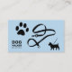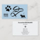 Um cartão de visita azul com ilustração de uma pata, uma coleira, e uma silhueta de um cão para atividades de andarilho de cães ou outros serviços de animais de estimação, tais como martelo, comportamento animal, etc. É totalmente personalizável e a esperança o ajudará em sua empresa.