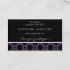 Promova sua empresa com este simples, mas elegante design de cartão de visita com um fundo preto a jato enfeitado com círculos ametistas. O texto personalizável permite que você altere fontes, altere cores e tamanhos de texto para melhor refletir os serviços de suas empresas. Adequado para design gráfica, marketing e vendas, seguros, financeiro ou fotografia.