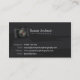 Este cartão de visita dos fotógrafo usa uma ilustração de uma câmera de DSLR como um logotipo na parte dianteira com uma grande imagem da câmera na parte de trás do cartão.