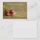 Cartão de visita que mostra rabanetes vermelhos com raizes longas e poucas folhas