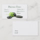O cartão de visita com as pedras pretas da terapia e a folha verde com água deixam cair