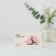 Um cartão de visita com uma silhueta de uma mulher na pose baixa do almoço (Anjaneyasana), nuvem rosa e informações personalizáveis em rosas claro e tons pretos. Perfeito para atividades como instrutor ou professor de ioga, meditação, centro de relaxamento ou de bem-estar, terapeuta, etc.