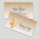 Cartão de visita para padeiros, padarias, bolos de casamento, cozinheiros de pastelaria e fornecedores de refeições. A frente apresenta o brilho dourado escorrendo sobre um fundo de ouro ombre, uma ilustração de um belo bolo de casamento de ornamentado com a coordenação do gelo dourado, e seu nome comercial em um roteiro de na moda. Ao contrário, adicione seu nome, título e informações de contato.