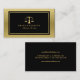 O cartão de visita muito elegante do advogado do advogado com falso fundo Dourado e justiça escala o símbolo com quadro preto.