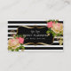 Cartão de visita Dourado do quadro da flor cor-de-rosa da listra excelente para um planejador do casamento, um planejador de evento ou uma loja floral.