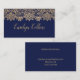 Cartão de visita de na moda maravilhoso feito em azul marinho, com gráficos de uma aparência de cor dourada, na parte superior frontal da placa. Personalize o texto para atender às necessidades de sua empresa. Um cartão de destaque adorável para ela.