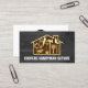 Um cobrir de madeira preta apresenta um design dourado de mão-de-obra. Essas ferramentas podem representar alguns dos serviços que você pode oferecer. Perto da base do cartão está o nome comercial que você pode mudar. No verso, em um cobrir branco, no topo está um logotipo da paisagem dourada que você pode usar. Seguem-se o seu nome prestigiado, os contatos e uma legenda de slogan para divulgar seus serviços. Um design de excelente para temas de mão de obra e de construção. #handyman #homerepaircontratante #construcção #prédios #empreiteiro #remodelação #empreiteiro #empreiteiro #homerepair #interiordesign #melhoras #handymantools #zazzlemade