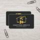 Uma cobrir de cinza escura apresenta um excelente design de quadro "pincel de tinta para casa" de ouro com o logotipo do martelo dourado (você pode usar) como janela da casa. Perto da base do cartão está o nome comercial ao lado do seu prestigiado nome. No verso, no topo está o logotipo do martelo dourado seguido do seu nome prestigiado, dos contatos e de uma legenda de slogan para divulgar seus serviços. Um design de excelente para temas de mão de obra e de construção.