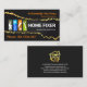 O cobrir apresenta uma malha de fio preto com um design de papel de parede cortado em ouro falso. Por cima está o seu nome prestigioso e o seu cargo. Perto do centro, há um motif de ferramentas que pode representar alguns dos serviços que você oferece. Mova este motivo em qualquer lugar na face da placa ou você pode substituí-lo pelo seu próprio logotipo. Ao lado do motivo está o nome comercial "HOME FIXER" e uma legenda de slogan que você pode alterar. Perto do canto inferior esquerdo está o seu contato telefônico. No verso, em uma cobrir escura, no topo está um logotipo dourado de "ferramentas manuais caseiras" que você pode usar. A isto segue-se o seu nome prestigiado, os dados de contato e uma legenda de slogan para divulgar a sua empresa. Um design criativo excelente para a construção, para o homem de mão e para as empresas de construção. #homerepair #constructor #empreiteiro #construtor #remodelação #empreiteiro #empreiteiro #empreiteiro geral #handyman #handymantools #carpenter #roofing #roofer #zazzlemade