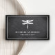 Cartão de visita elegante com uma bela ilustração de libélula sobre um fundo preto de bordo. Adicione seu nome e detalhes de contato para fazer uma primeira impressão duradoura.