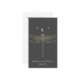 Modern earring display card features gold celestial dragonfly with crescent moon illustration on dark gray background with white contemporary text on front, and gray text with customizable QR code for your website or social media on back.