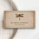 cartão de visita elegante com uma bela ilustração de libélula sobre um fundo de burlap. Adicione seu nome e detalhes de contato para criar uma primeira impressão duradoura.