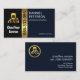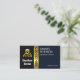 Uma faixa vertical falsa de ouro demarca um cobrir preto e azul em camadas. ; Dentro, a peça de ouro contém os contatos. À esquerda deste é um logotipo de motorista dourado que você pode usar com o nome de empresa "Chauffeur Service". No topo, você pode encontrar seu nome prestigiado, o título do trabalho e uma opção de legenda de slogan no canto inferior direito. Você pode mudar os comentários de legenda para o slogan para atender às suas necessidades de serviço. No verso, num cobrir azul escuro, o logotipo está no canto superior esquerdo. Na direção oposta estão os detalhes de contato e uma opção de legenda de slogan. Um excelente e uma placa de na moda para todos, especialmente para os motoristas. #professionalchauffeur #chauffeurservice #limo #taxi #taxidriver #taxiservice #driver #chauffeur #limoservice #privatehiredriver #rideshare #designaddriver #zazzlemade