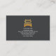No verso, numa cobrir cinza, o logótipo dourado está no topo, seguido do seu nome, dos seus contatos e de um slogan para divulgar os seus serviços.
