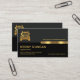 No verso, o mesmo tema de design é usado com o logotipo dourado e seu nome prestigioso no topo. A coluna negra por baixo abriga os detalhes de contato e uma legenda de slogan. Todas as letras estão em ouro falso.