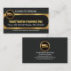No verso, numa cobrir de cinza, o logótipo dourado está no topo, seguido do seu nome prestigiado e dos contatos.