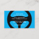 Driving school logo business card template. Custom color design with black steering wheel logo. Personalize with driving instructor name and monogram . Blue and black or custom colors. Also great for mechanic, Uber taxi driver, lease or rental company, car show booth, auto repair shop, driving lessons, car detailing, transport service, road work, car tuning etc.
