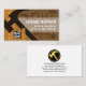 Cobrir apresenta um martelo que forma uma silhueta de construção contra uma camada de grãos de madeira. A janela para casa é feita de ferramentas manuais. Uma camada branca à direita contém o nome da sua empresa e os detalhes de contato. Por trás deste cartaz branco está um outro design de ferramentas de mão-cheia. No verso, em um cobrir branco, um logotipo de martelo dourado que você pode usar está no topo, seguido do seu nome prestigioso, detalhes de contato e uma opção de legenda de slogan para divulgar seus serviços. Um cartão criativo para o pessoal doméstico, carpintaria e construção. #handyman #constuctionhandyman #homerepaircontratante #construtor #construtor #remodelador #ferramentas manuais #construtor #construtor #homerepair #interiordesign #carpenter #hammer #zazzlemade
